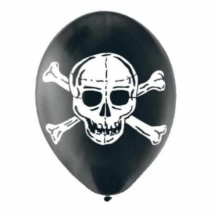 “Pack of 6 Black latex balloons printed with skull and crossbone design Balloons measures 11″” (27.5cm) Suitable for helium fill “