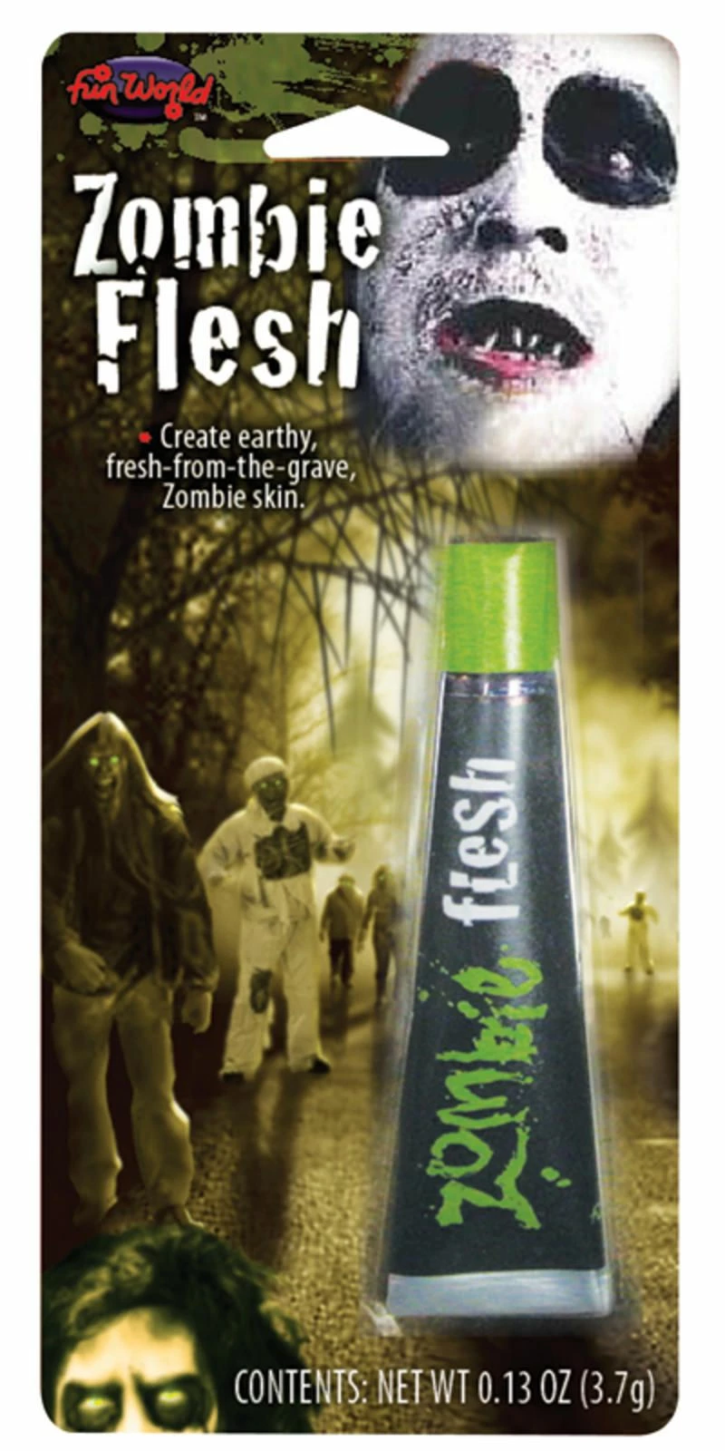 Use this gruesome Zombie Flesh Makeup to add those essential ‘rotten skin’ finishing touches to your terrifying Halloween zombie costume this year! Contains one 28.3g tube of Zombie Flesh paste which creates earthy fresh from the grave zombie skin. Also creates old age wrinkles cracks and peeling skin in minutes! Perfect for undead zombie corpse and other crazy fancy dress costumes!